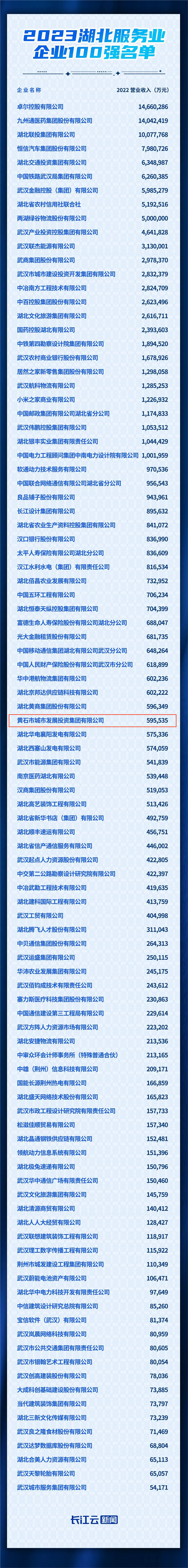 11月1日,2023年湖北企業(yè)三項100強發(fā)布會在武漢召開。會上,湖北省企業(yè)聯(lián)合會、湖北省企業(yè)家協(xié)會發(fā)布“2023湖北企業(yè)100強、湖北制造業(yè)企業(yè)100強、湖北服務(wù)業(yè)企業(yè)100強”名單,黃石城發(fā)集團再度榮獲2023年湖北服務(wù)業(yè)企業(yè)100強稱號。