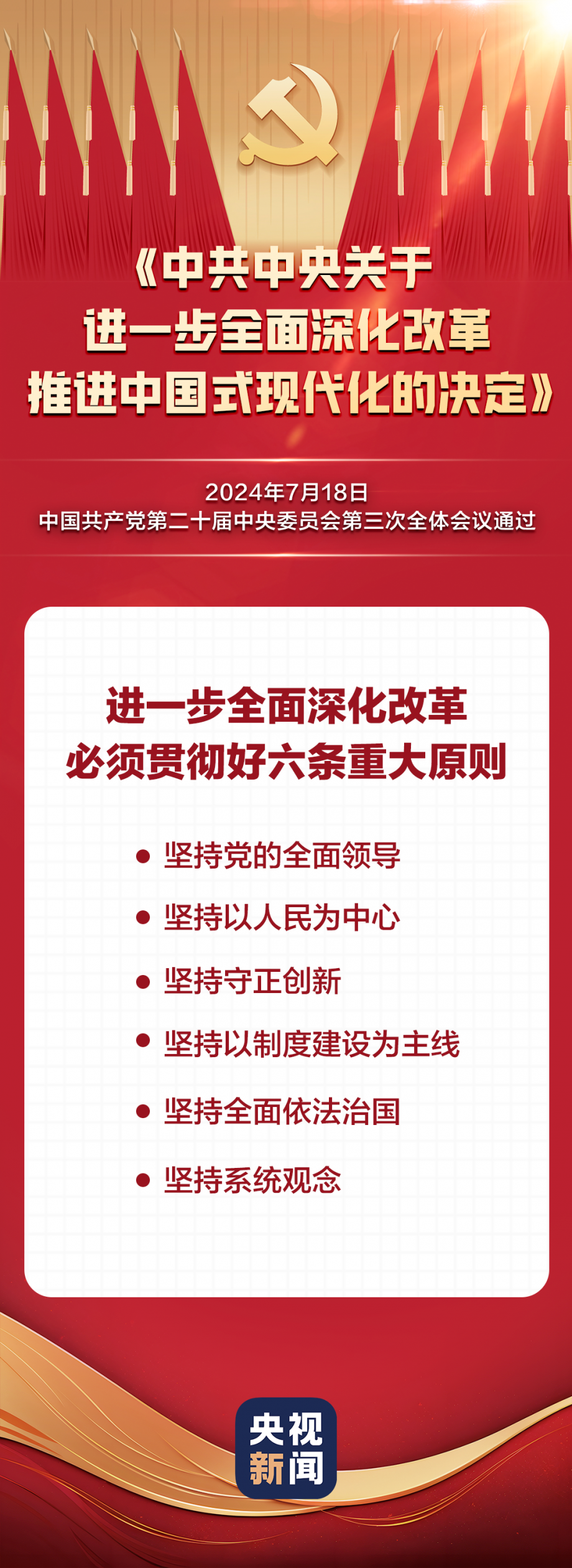 中國共產(chǎn)黨第二十屆中央委員會第三次全體會議,于2024年7月15日至18日在北京舉行。全會最重要的成果是審議通過《中共中央關(guān)于進一步全面深化改革、推進中國式現(xiàn)代化的決定》。《決定》共15部分、60條,分三大板塊,一文速覽: