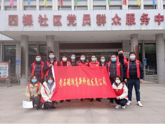 黃石高新物業(yè)公司董事長鄒丹為社區(qū)科普宣教、助老助困等5支志愿服務(wù)隊(duì)授旗并合影留念