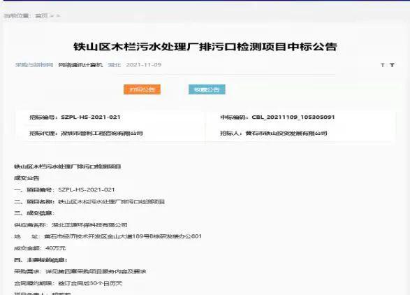 近日,正源環(huán)保公司成功中標(biāo)木欄污水廠排污口檢測項(xiàng)目,中標(biāo)金額40萬元。