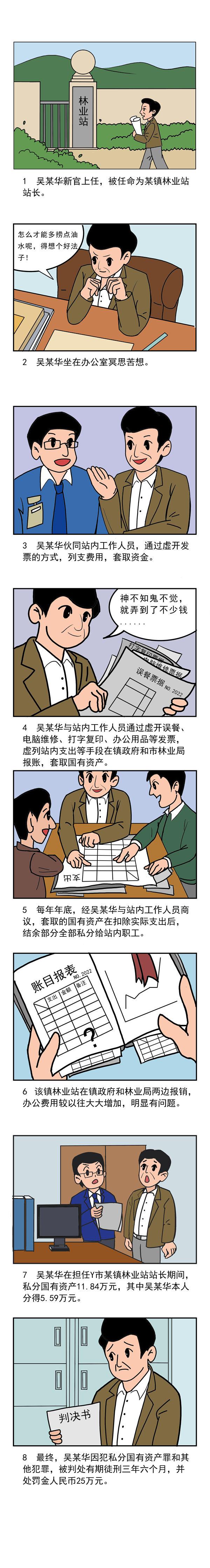 2014年至2019年,Y市某鎮(zhèn)原林業(yè)站站長吳某華伙同站內(nèi)工作人員,通過虛開誤餐、電腦維修、打字復(fù)印、辦公用品等發(fā)票,虛列站內(nèi)支出等手段在鎮(zhèn)政府和市林業(yè)局報賬,套取國有資產(chǎn)。每年年底,經(jīng)吳某華與站內(nèi)工作人員商議,套取的國有資產(chǎn)在扣除實際支出后,結(jié)余部分全部私分給站內(nèi)職工。
