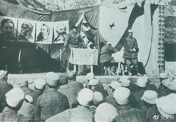 毛澤東在張村驛主持召開(kāi)西北革命軍事委員會(huì)會(huì)議,作關(guān)于戰(zhàn)略方針的報(bào)告。
