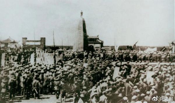 毛澤東在中國革命死難烈士追悼大會上擔(dān)任主祭,并發(fā)表演說。